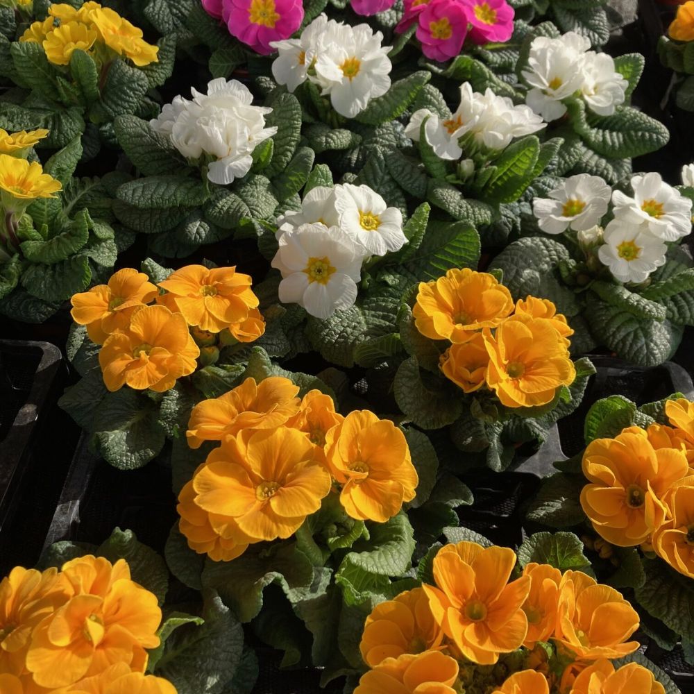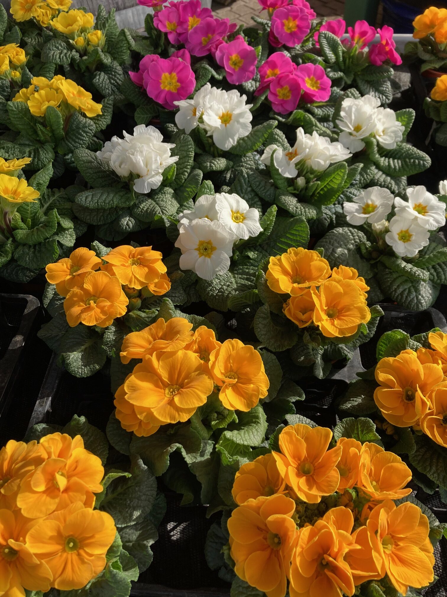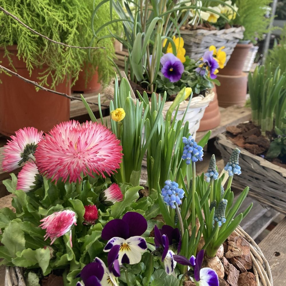 …in der Gärtnerei mit bunten Frühlingsblühern, erste Salatsetzlinge, neue Gefässe.