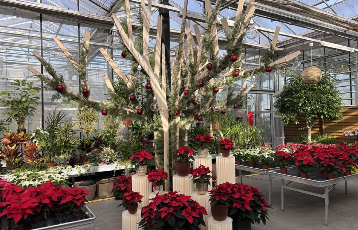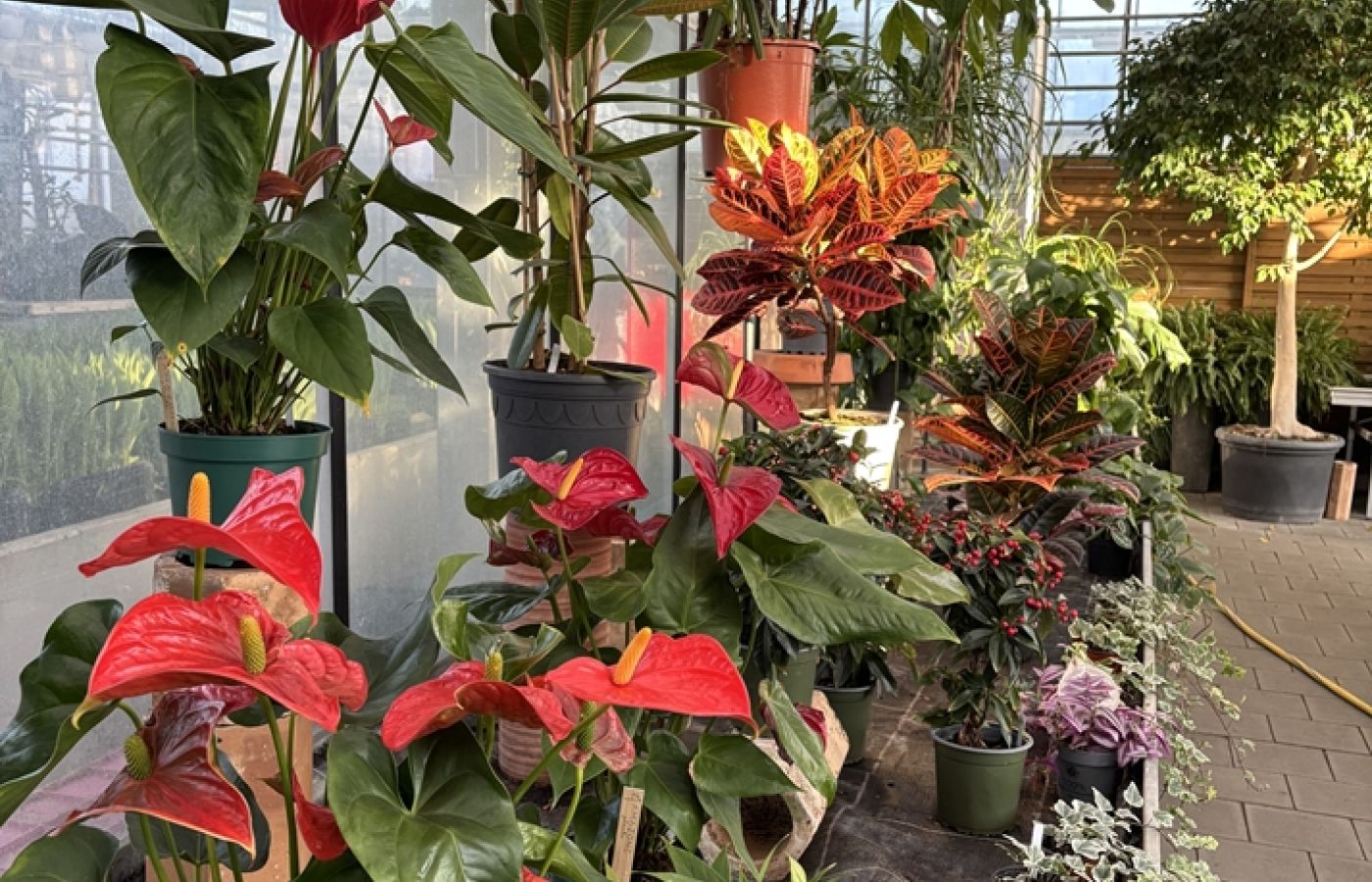 Auf 2000 m2 Glasfläche kultivieren wir über 100 Pflanzenarten. Vom Frühlings- und Sommerflor, Gemüsesetzlinge, bis zu Herbstzauber- und Blüten. Im Jahr bis zu 500`000 Pflanzen. Alleine die Weihnachtsstern-Produktion von Juli – Dezember umfasst ca. 20`000 Stück.